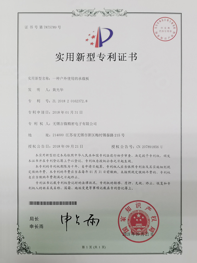 一種戶(hù)外使用的承載板實(shí)用新型專(zhuān)利證書(shū)
